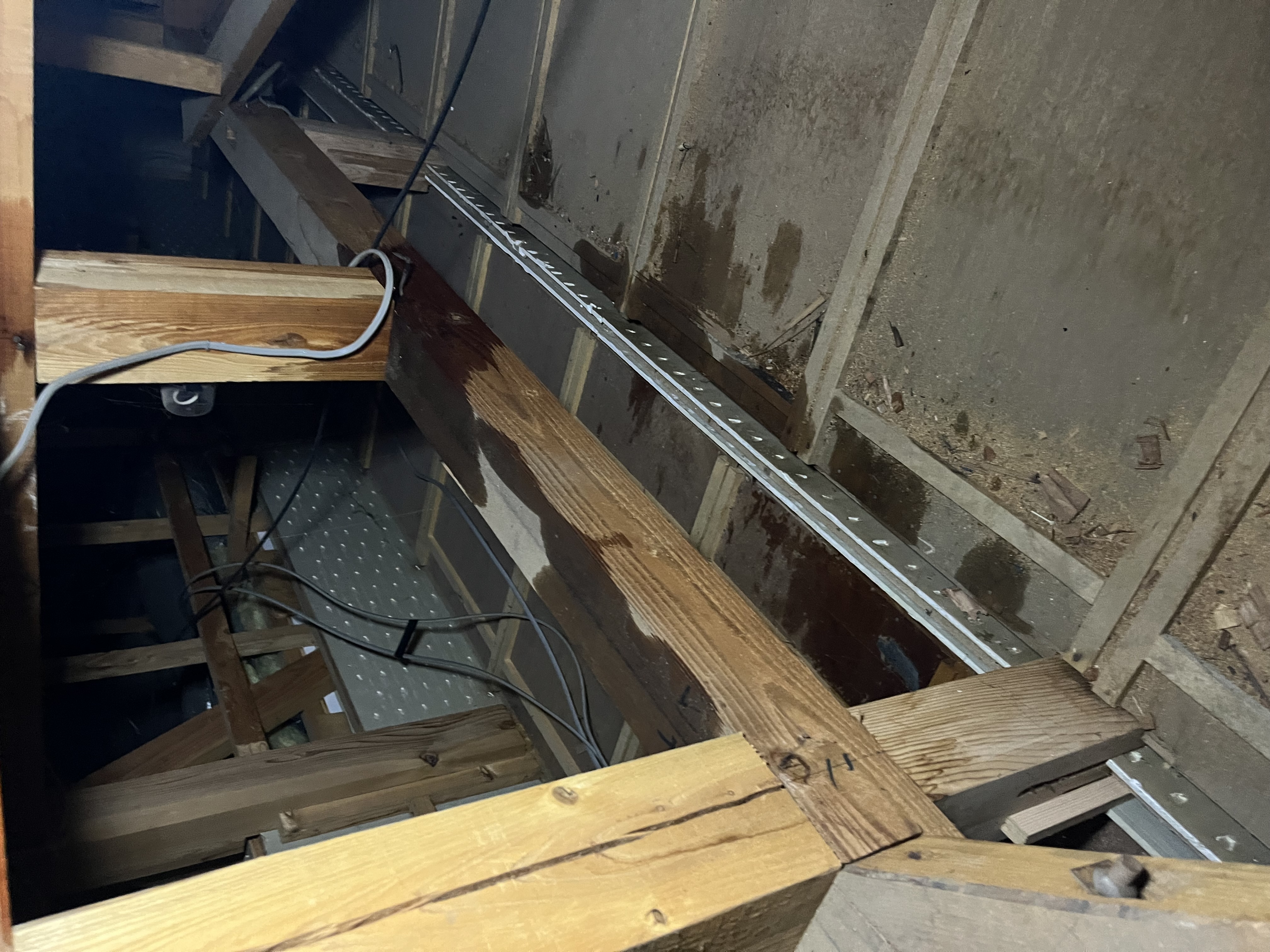 天井裏を確認したところ、梁に水が回っており、