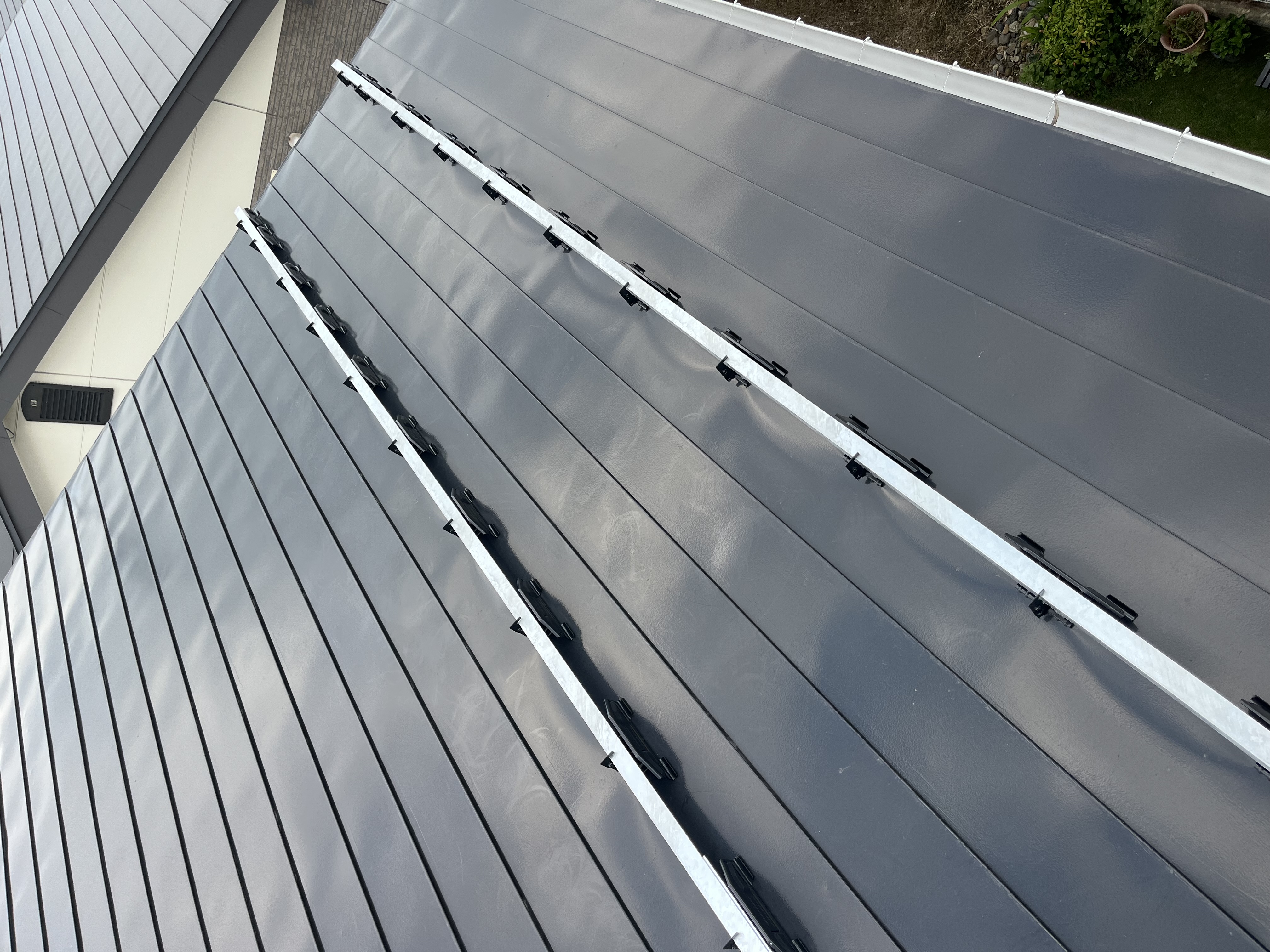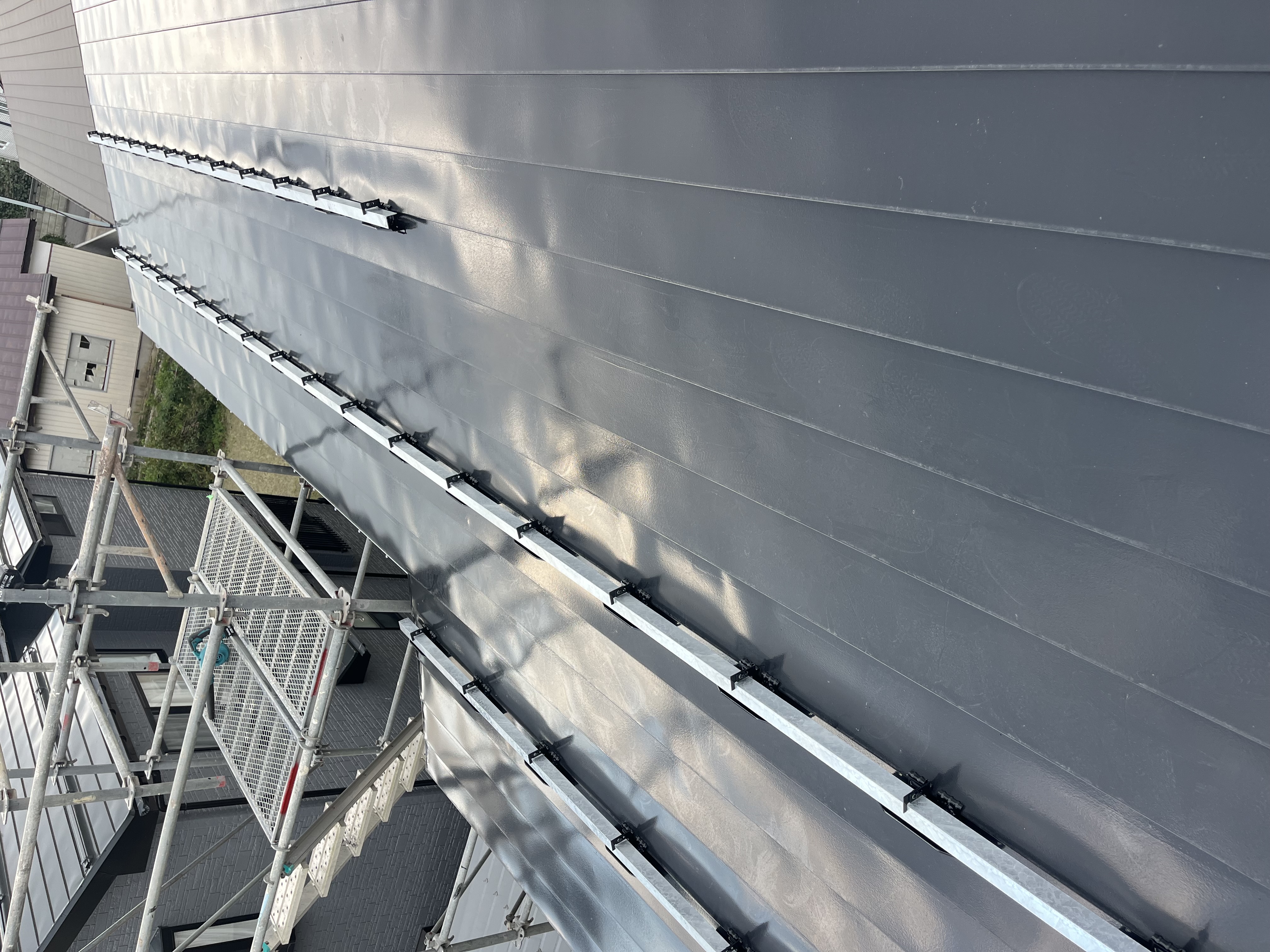 今回の施工は、既存の屋根に後付けで雪止めを設置しました。